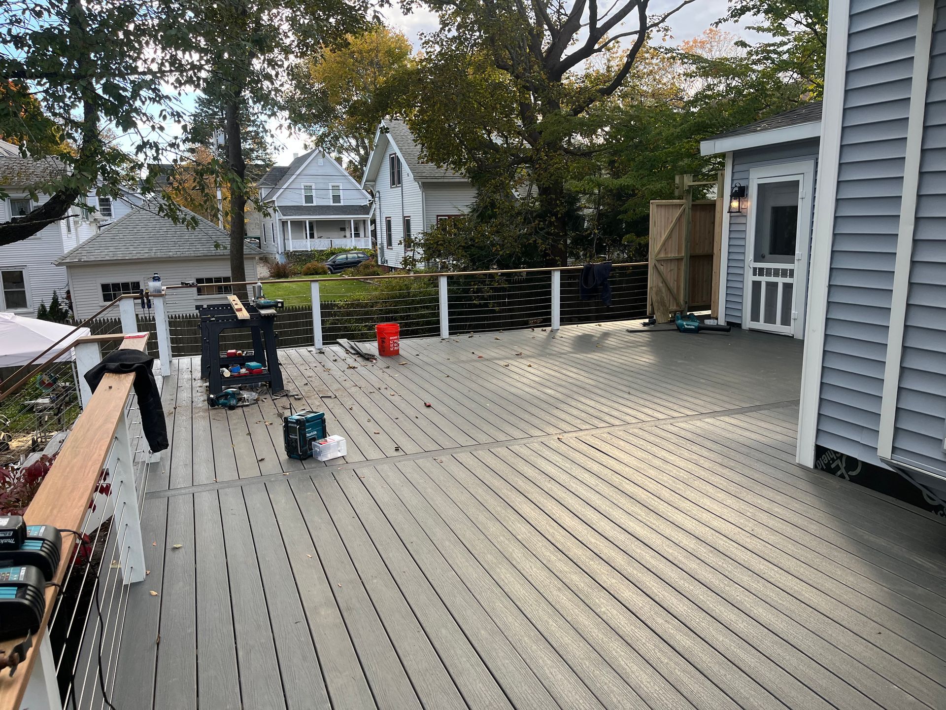 The finished deck is reviewed and the site is cleaned.